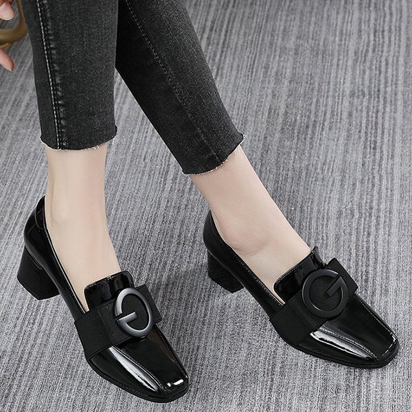 漆皮方頭粗跟英倫單鞋